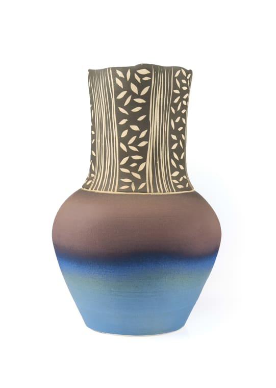 Matt stoneware vase with line and leaf motif