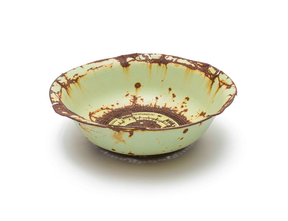 Now, with the Tintsaba Enamel range of baskets, these two traditions have collided. Inspired by a discarded and somewhat rusted enamel plate or bowl, our skilled master weavers transform an old, broken item into a unique, contemporary artwork. A truly innovative interpretation of a once lowly utilitarian object.