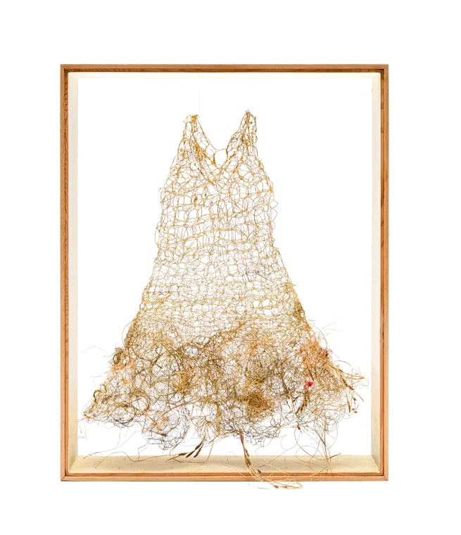 The delicate crocheted grass dress embodies the paradox of fragility and resilience. It appears vulnerable yet is surprisingly tenacious. Like the human experience, a transformative journey from chaos to beauty, this little dress whispers truths about our own life journeys, the refining fire that shapes us and our innate resilience.