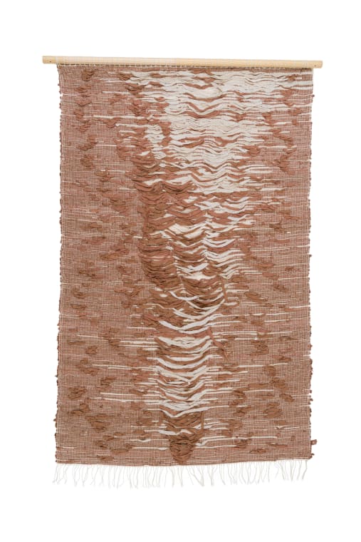 Leilah Walter's work explores the deep relationship between humans, textiles, and the land. Working primarily with natural fibres and textile waste, Leilah creates handwoven and hand-pieced artworks that are minimal and richly layered; visually, materially, and philosophically. Through slow, intentional processes, Leila reflects on how cloth carries memory: of agriculture, labour, touch, and time. Her recent works incorporate discarded textiles from the fashion industry, reassembled into woven and stitched tapestries that evoke sedimentary layers, suggesting that fabric, like soil, accumulates history. These pieces speak to the fleeting nature of desire and its lasting imprint on the earth.