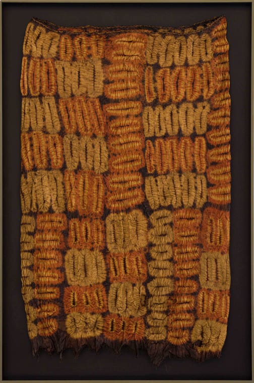 Its characteristic palette of soft yellow, red, and black tones, together with its intricate surface textures, is the result of a multi-stage resist-dyeing process. Within Dida society, the cloth symbolised wealth, power, and identity. It was worn by elites during ceremonies such as weddings, funerals, and ritual dances, and was regarded as a form of wealth and cultural treasure, embodying the skill, patience, and creativity of Dida women.