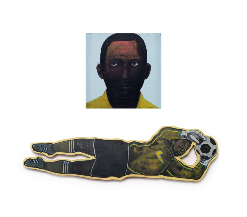 the painting: 54 by 53,5cm excluding frame, 58 by 58 by 3cm including frame; the sculpture: 43 by 161 by 4cm