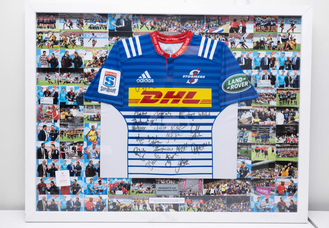 A Totalsports signed Stormers jersey, with images from The Presidents Cup in 2016