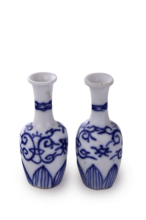 A pair of blue and white porcelain doll house vases