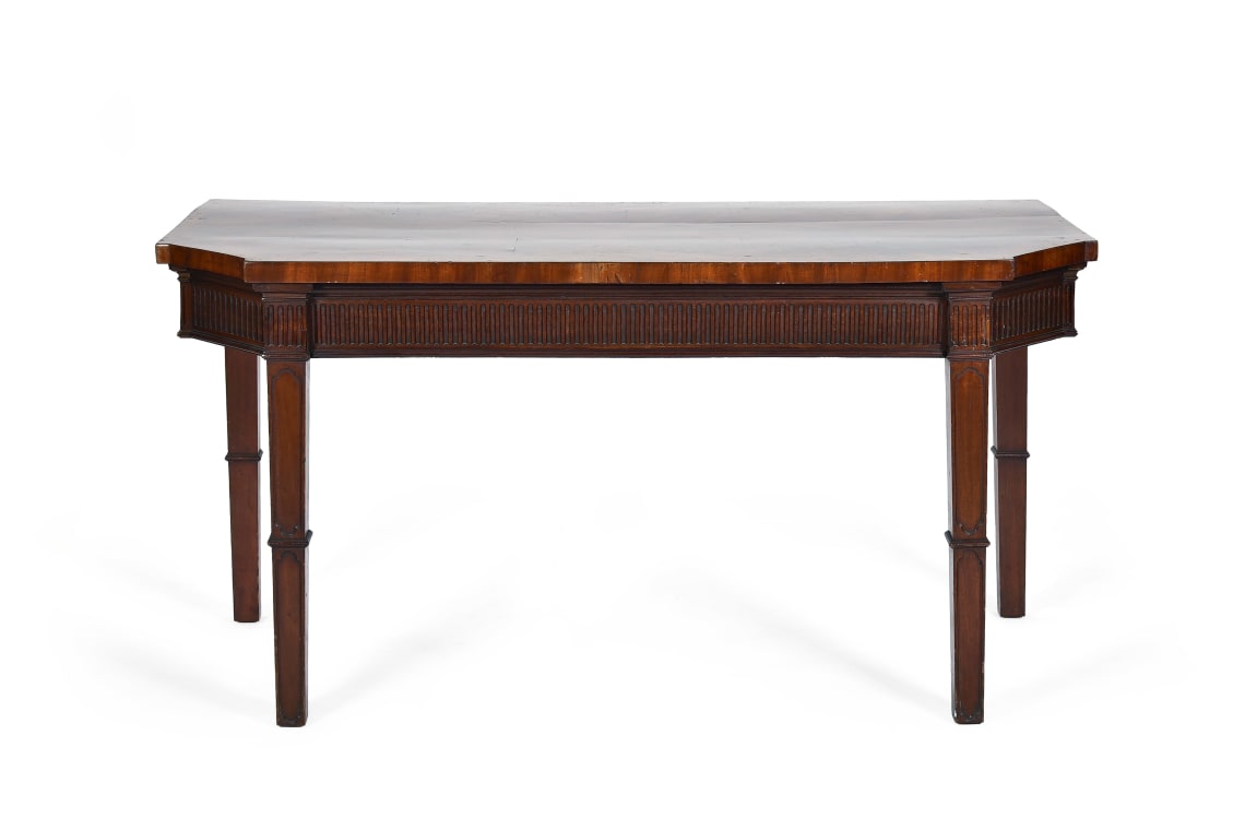 This English Neo-classical example, with its symmetry, restraint, straight fluted legs and urn carving, was influenced by architects such as Robert Adams.