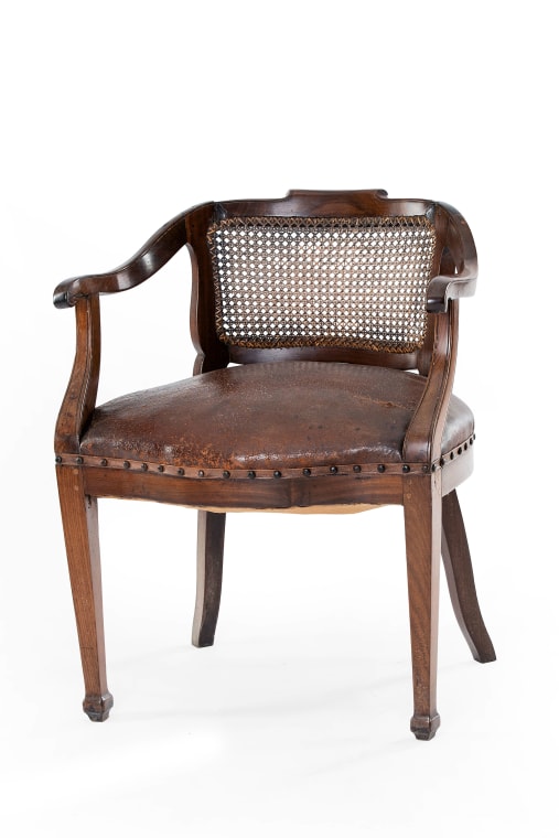 Cape stinkwood and leather upholstered tub chair, late 18th century
