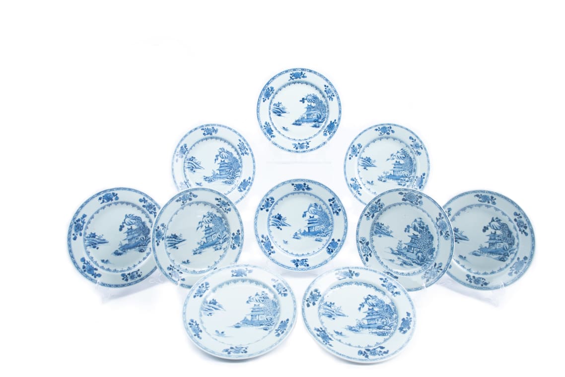 A set of ten Chinese export porcelain plates from the Nanking Cargo, painted with a boatman, c. 1750