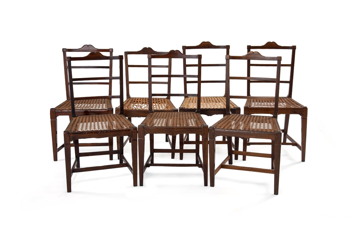Harlequin set of seven Cape stinkwood Neo-classical side chairs, early 19th century