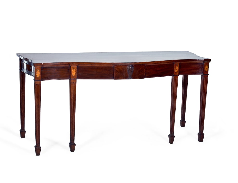 This server draws heavily on the refined design vocabulary of the late 18th century Neo-classical movement, particularly the work of Sheraton and Hepplewhite.