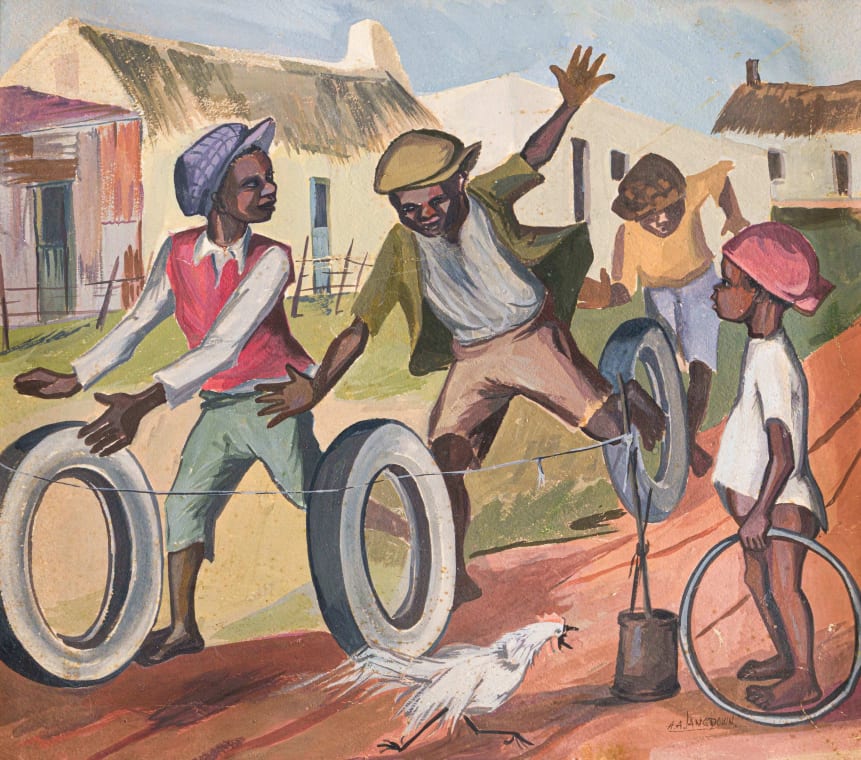 Children Playing outside Cottages