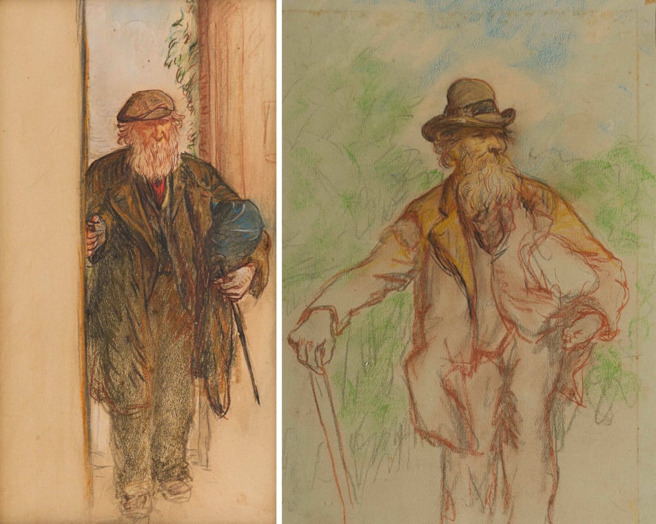 (1) pastel on paper laid down on board; (2) pastel on paper