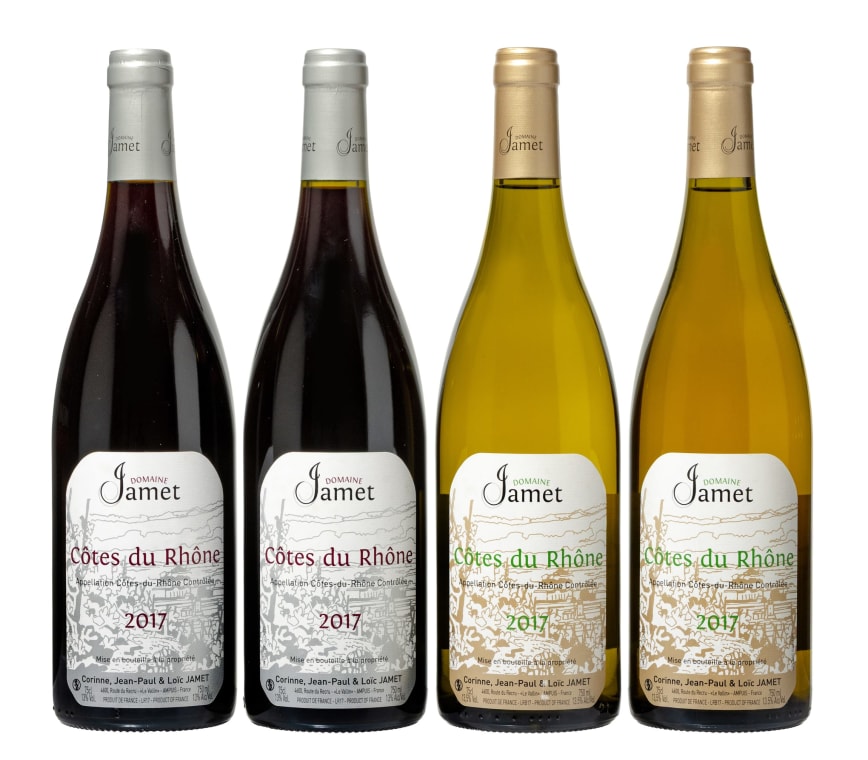 'Slightly bigger, richer and riper than the IGP Syrah, the 2017 Cotes du Rhone is medium to full-bodied, creamy and supple, with similar notes of crushed stone, a fumé-like character. But it also has blackberries, black olives and hints of espresso. It finishes silky and long. Jean-Paul Jamet points out that it comes from schist soils identical to Côte Rôtie but from younger vines. Like the IGP, it's destemmed and aged in old barrels.' - Joe Czerwinski, Wine Advocate, 91/100 (Oct 2018)