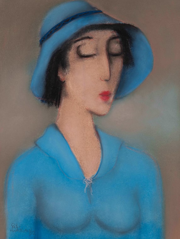 Woman with Hat in Blue