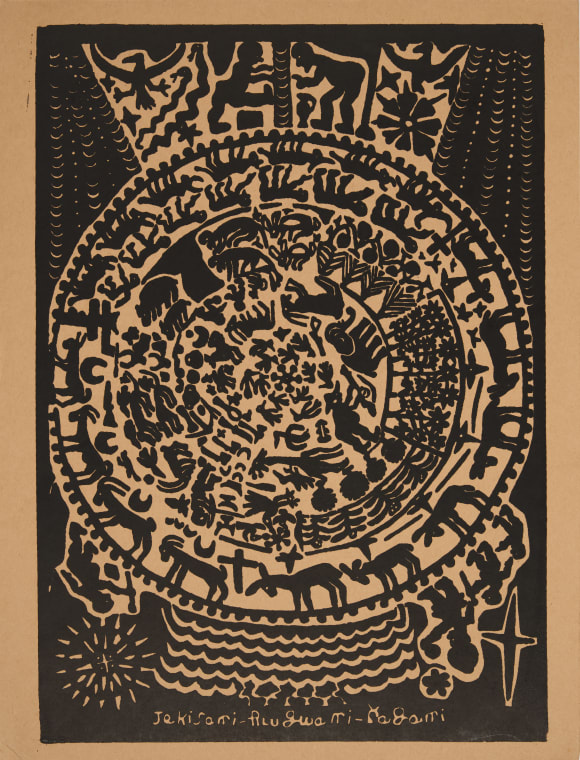 This curated selection of items from Rayda’s collection includes two Angels by Jackson Hlungwani, whom she accompanied to an exhibition at the Watari Museum in Japan in 1995, where the “Altar of God”, originally from his hilltop sanctuary in Mbhokota in Limpopo, was exhibited and which later formed part of Wits Art Museum’s Collection. Also included are a group of Nhunguvana by Tsonga artists and a carved figure of a Sangoma by Johannes Maswanganyi that also doubles as a Nhunguvana.
