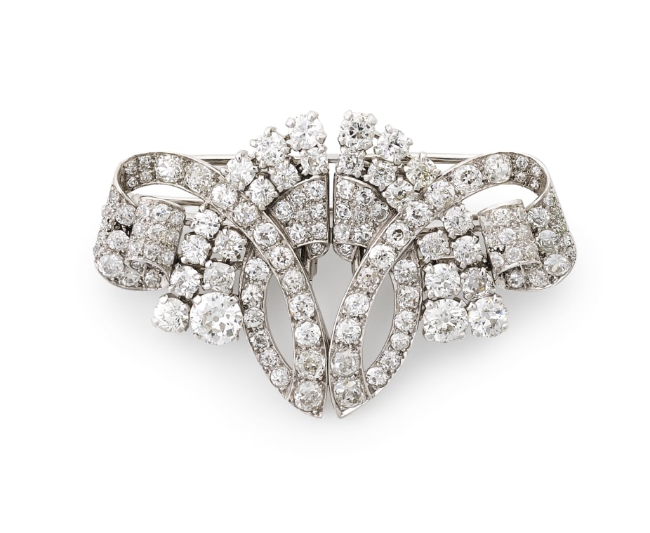 Art Deco double clip diamond brooch