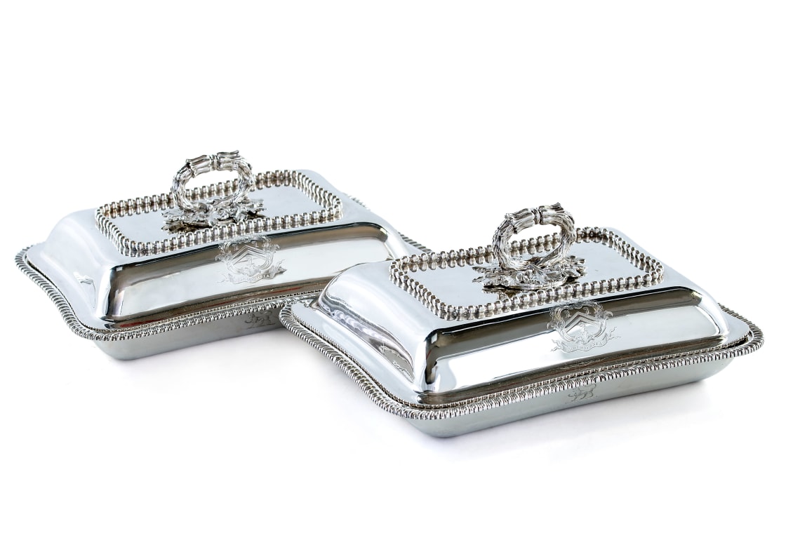 A pair of George IV silver entrée dishes, Paul Storr, London, 1820, and John Houle, London, 1823