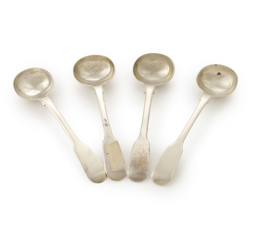 Four Victorian silver 'Fiddle' pattern silver salt spoons, William Bateman & Daniel Ball, London, 1842