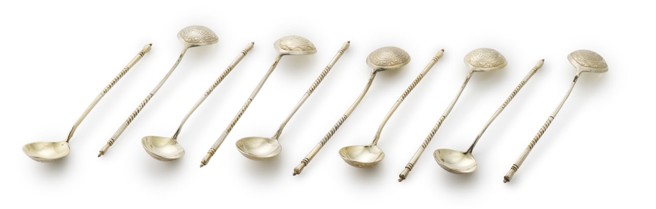 Ten Russian silver-gilt Mocha spoons, Moscow, 1888
