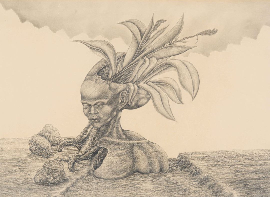 Fikile Magadlela, Portrait of a Man with Foliage Emerging from His Crown
